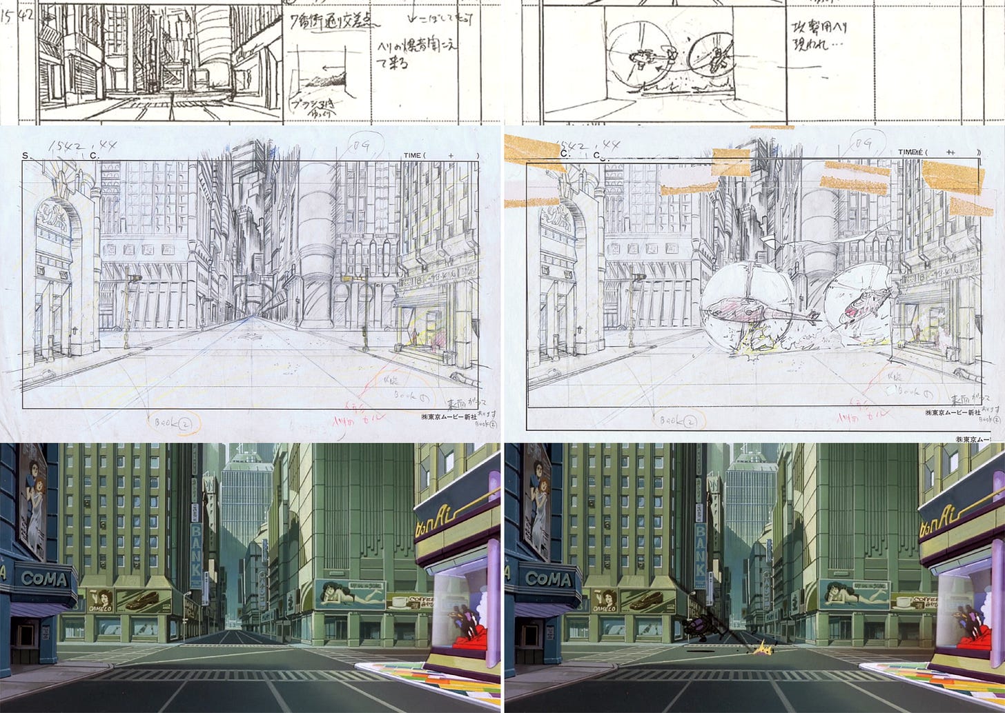 So, we have to keep this complex blend in mind as we approach Otomo’s storyboards. He came at them like a manga artist who’d come at manga like a filmmaker.