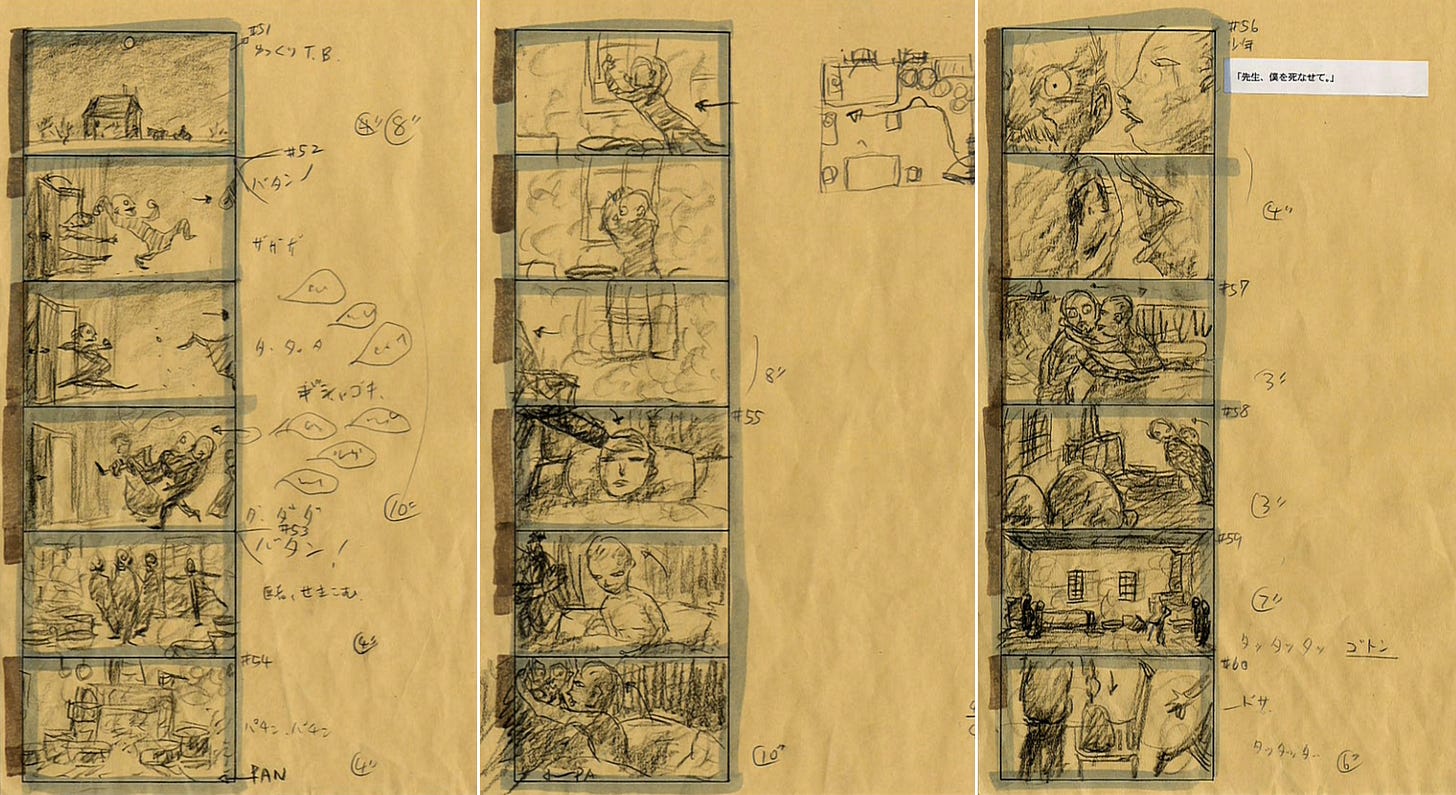 He began storyboarding in spring 2005.2 It was the start of a fast, crushing production — one that would see Yamamura writing, directing, designing and key-animating the entire film himself. He was also behind the backgrounds, the editing and more.