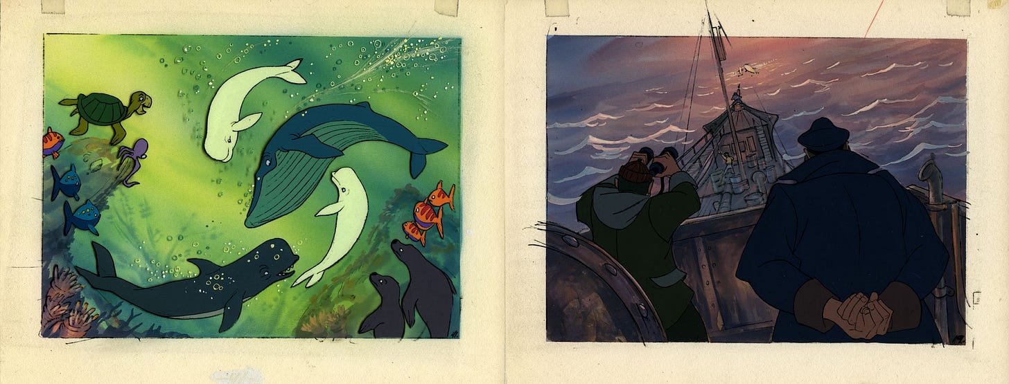There are animation sequences from Banjo the Woodpile Cat (1979) and layouts for Dragon’s Lair. Bluth’s whole storyboard for The Secret of NIMH is here in near-complete form. You’ll find an ocean of stuff from the underrated Titan A.E. (2000). Even unknown or unmade Bluth projects (Piper, The Little Blue Whale) get represented.