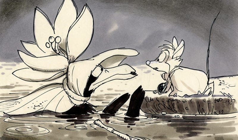 Bluth and associates donated tons of drawings, cels and other materials to SCAD in the 2000s. It’s been gradual, but many of them have come online. Lately, the internet version of the collection has gotten larger and easier to use than ever — it now has over 5,000 images and videos from across Bluth’s career.