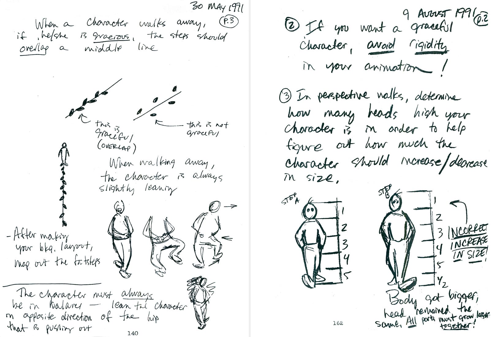 It’s a rare chance to learn from a master of David’s stature. Her advice ranges from the hyper-technical to the broad and philosophical. “Remember, animation is not reality! It is caricature!” reads one note. “It goes beyond reality — even the gentlest animation.”