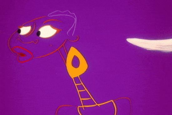 Unrealistic motion became a pillar of Zagreb cartoons, as Vukotić said elsewhere. These characters moved in wildly abstract ways, without drawing “on real-physical movement — that is, on the anatomical law of motion.”6