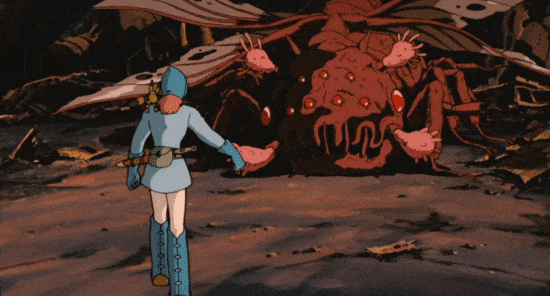 These were early steps toward anime realism — which would repurpose ideas from limited animation (still or reduced frames, animating only one part of the body, breaking the 12 principles) to depict detailed characters who mimic real-world movement. Although Miyazaki has criticized limited animation, he did this in Nausicaä during the ‘80s, and again in Spirited Away, and in most of his films.