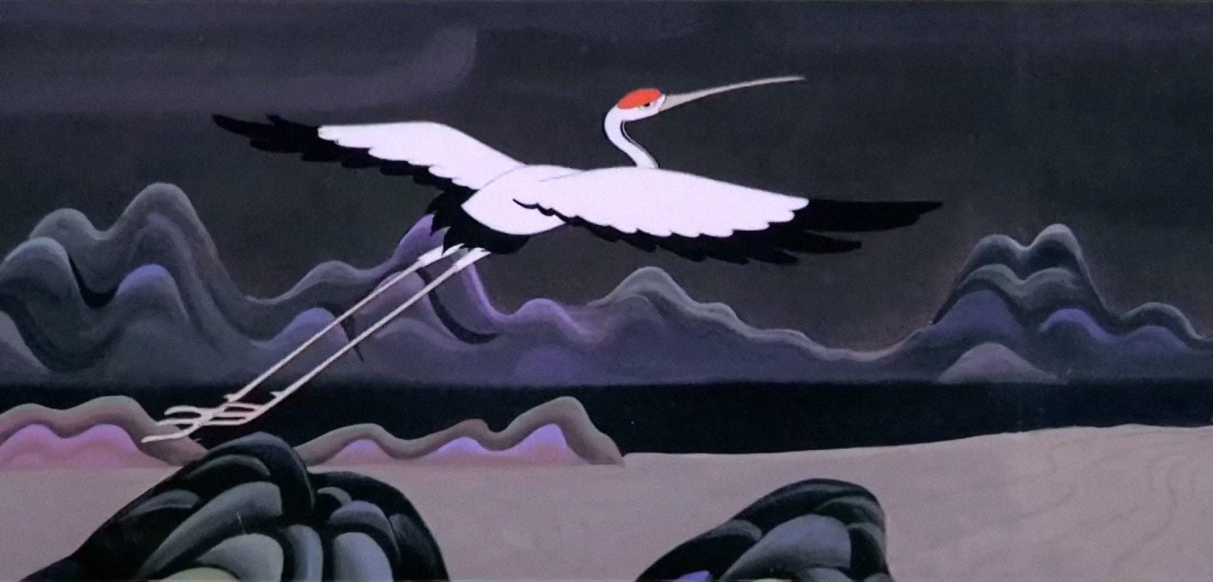 A few years after The Conceited General, the Shanghai team invented ink-wash animation. By way of a complex, grueling and secret process, it brought the look of traditional ink-wash painting to the screen. And the artists believed that any film with that look should go all the way: it shouldn’t just be a superficial aesthetic. The story had to match, as did the pace, as did the motion.