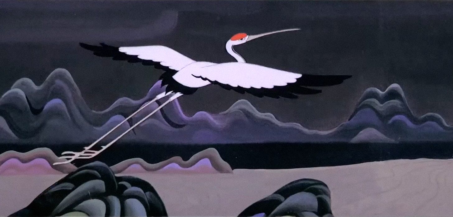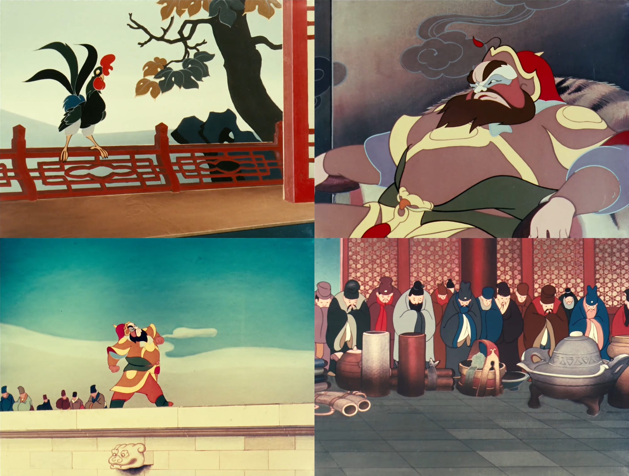 The team pulled from the performing arts, too. The Conceited General (1956) is usually cited as the start of the “first golden age” of Chinese animation, and it isn’t Disney-like in its look or animation: Peking opera was its point of reference.