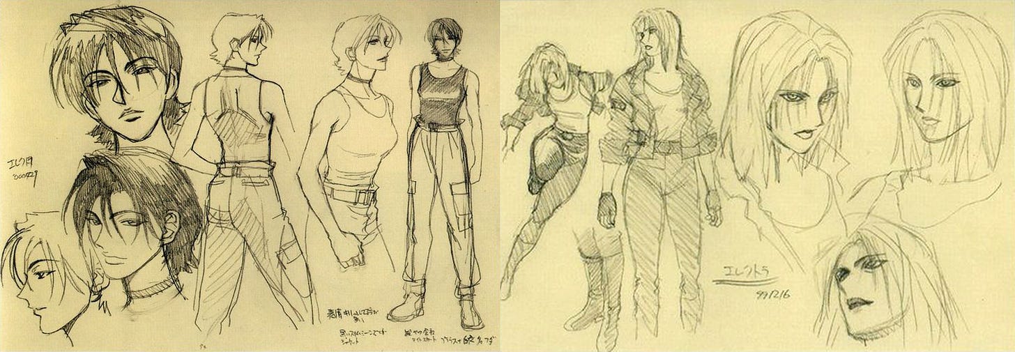 Meanwhile, Elektra’s look seems to be borrowed from actor Gina Gershon, another American. The request was for a “woman of mixed race with [a] slightly dark complexion” who is “strong and cool,” Kawamoto recalled. Her character sheet explained that she would show her vulnerable side to Spike and Spike alone.