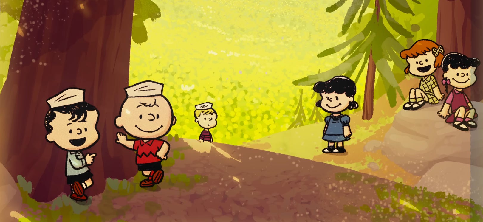 Then there was the visual side. Wiese went for new stuff while looking at Peanuts’ history. “I would use some of that classic Melendez–Schulz staging, but then, because it’s a musical, I was able to break out of that,” he said. One visual idea was to draw the characters younger in old photos by using Schulz’s designs from the ‘50s — rather than “a new version of Charlie Brown that makes him look little, like Muppet Babies.”