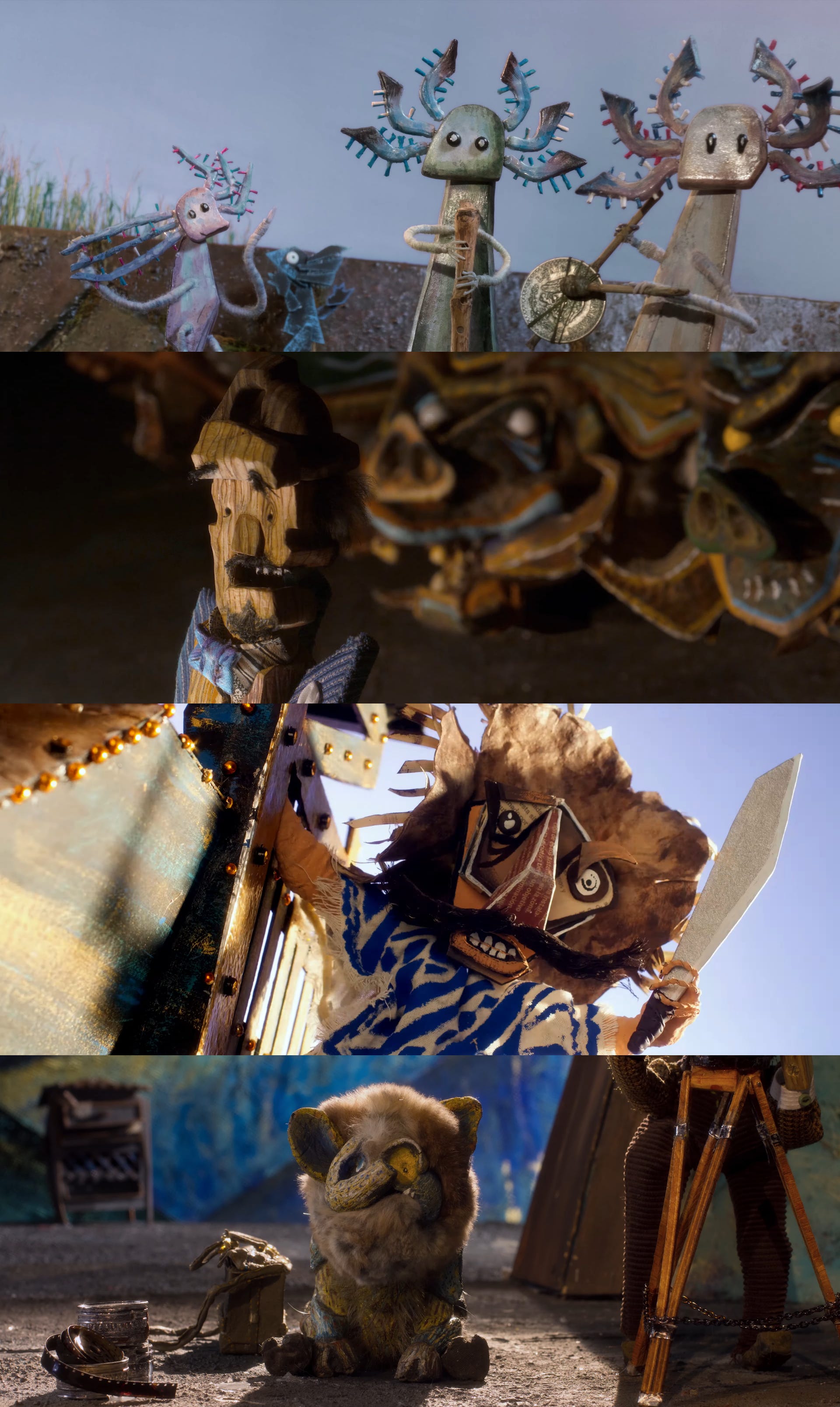 This story is realized with a cubist design sense that lights the screen on fire. The characters and their world are all angles — jumbles of shapes and materials that never bore the eye. The team used the imperfections and kept its visuals practical: greenscreen and most digital effects were avoided. (“We have always loved all productions that use manual techniques, because we feel that it looks real — because it is real,” Roy said.)