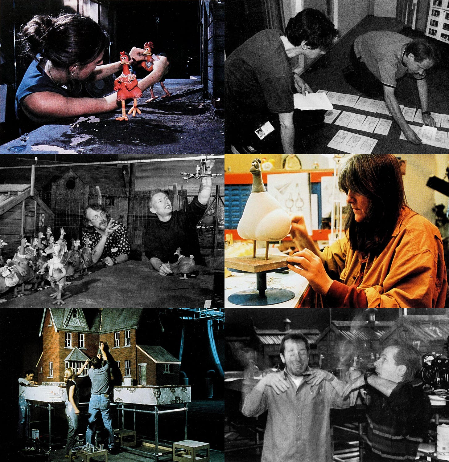 Like most stop-motion features, Chicken Run was done by creating exact duplicates of each character so that multiple animators could work on the film simultaneously. It was too slow otherwise — by 1999, the most animation that Aardman had shot for Chicken Run in a single day was 26 seconds. Animators were partitioned off in the industrial shed; the directors darted between units. As Lord said: