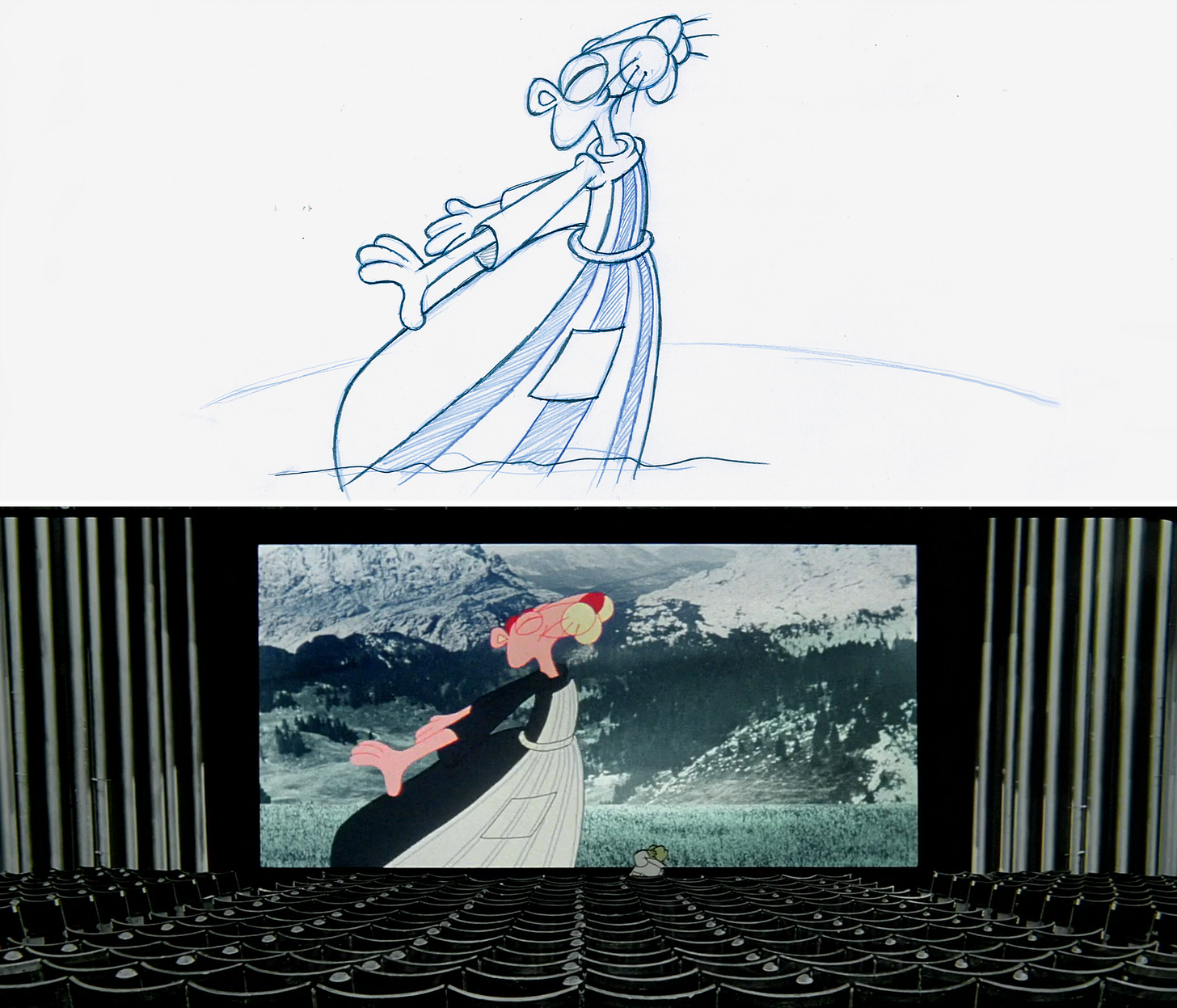 I turned it back to the Julie Andrews storyboard sequence. He just stared at it with this scowl on his face — like, for a minute. It was so embarrassing. I didn’t know what he was gonna say, what he was gonna do. I thought, “I think I’ve blown it.” And then, eventually, he burst out laughing.