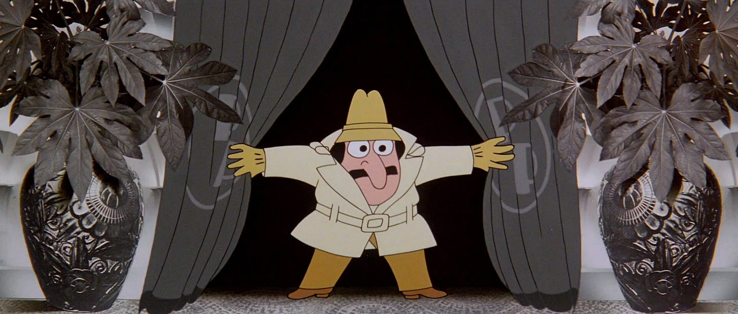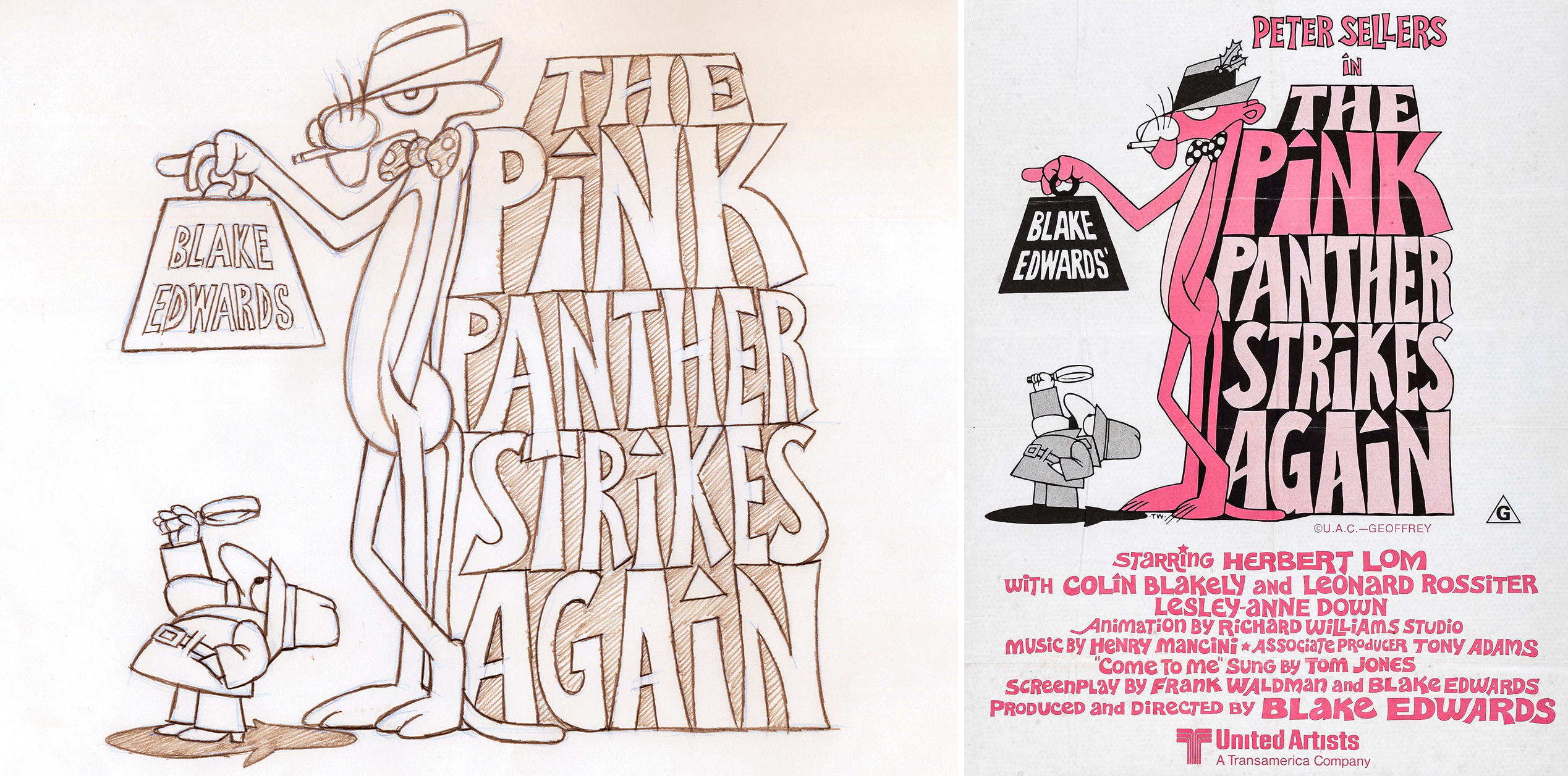 I think it was being filmed in Shepperton. I met Blake in his private apartment there and showed him my work. He said, “You’ll be great for this.” I said, “Well, what do you want, Blake?” He said, “The titles are totally yours. Just have fun with the Pink Panther and Clouseau. Here’s the script.”