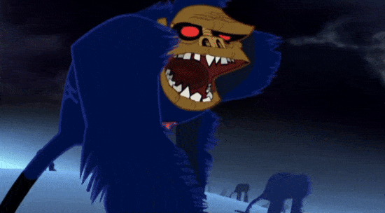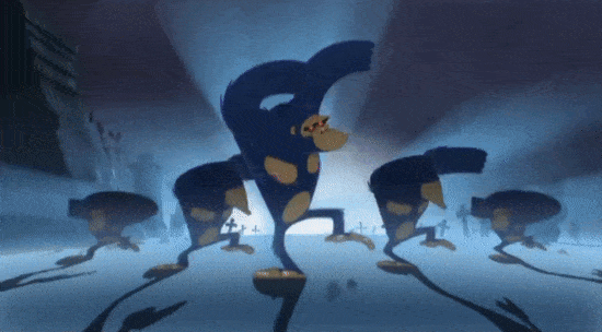 I was trying to animate the last shot on the last night. Everyone was pissed off with me because I couldn’t get anything that I liked. So, we took some still drawings into composite and made it up in the last hours before delivery. It’s when the zombie gorilla becomes a skeleton (03:43). That was meant to be animated, but it’s not. It’s just a series of cheats.