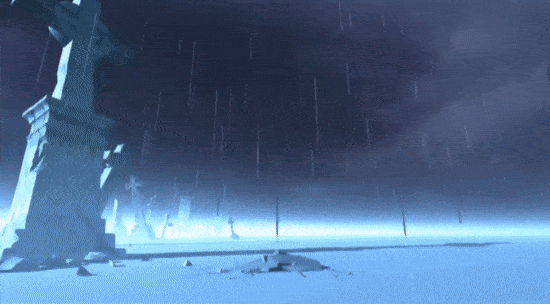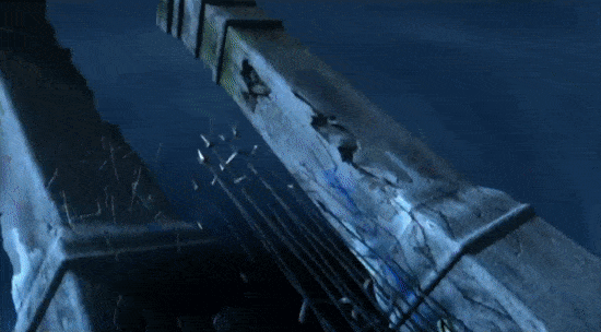 Pete: The ground cracking open is CG. The light coming up and out of the ground is all volumetric. It was super hard to do at the time.