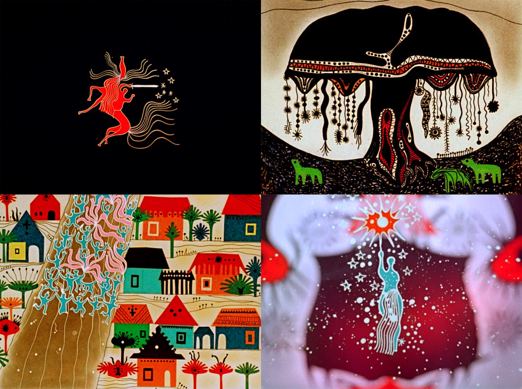 One of them was Sándor Reisenbüchler (1935–2004), whose film The Kidnapping of the Sun and Moon (1968) was among the three we covered. It’s a gorgeous, intense piece. Reisenbüchler was a creative rebel who often worked from home, rather than in Hungary’s official animation workshops. He made films mostly alone and noted in the ‘70s that he used neither storyboard drawings nor exposure sheets.