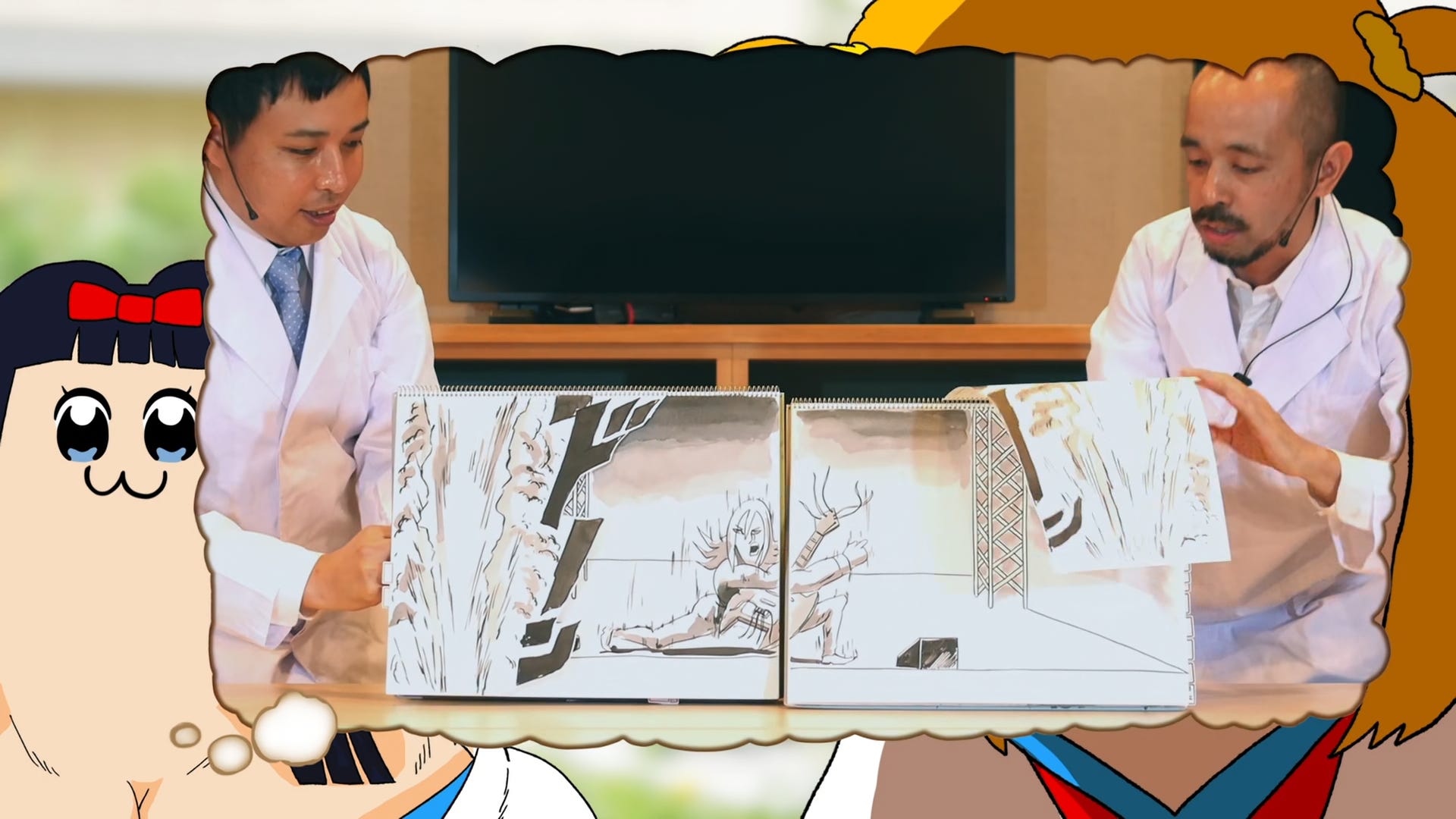Then there was Pop Team Epic (2018–2022), the mainstream anime series that finally made AC-bu’s name famous with the public. Adachi and Itakura were hired to create a recurring segment of the show, something called “Bob Epic Team,” which stood out because it was so much worse. They tried to get a rise out of hardcore anime viewers, but were terrified of what they might say.11
