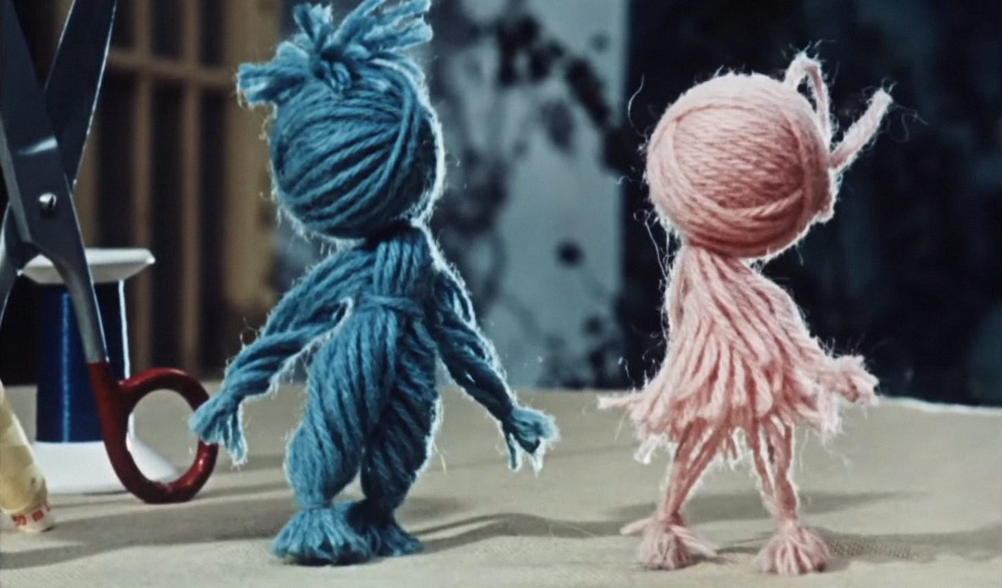 Two Balls of Wool (1962) was one of the early films in Týrlová’s return to form. It’s a small masterpiece of her style. There’s no real plot — it’s about the contents of a sewing kit, which come to life when people aren’t around. You won’t find an eye or even a face among the cast, let alone any dialogue. But it’s magic.