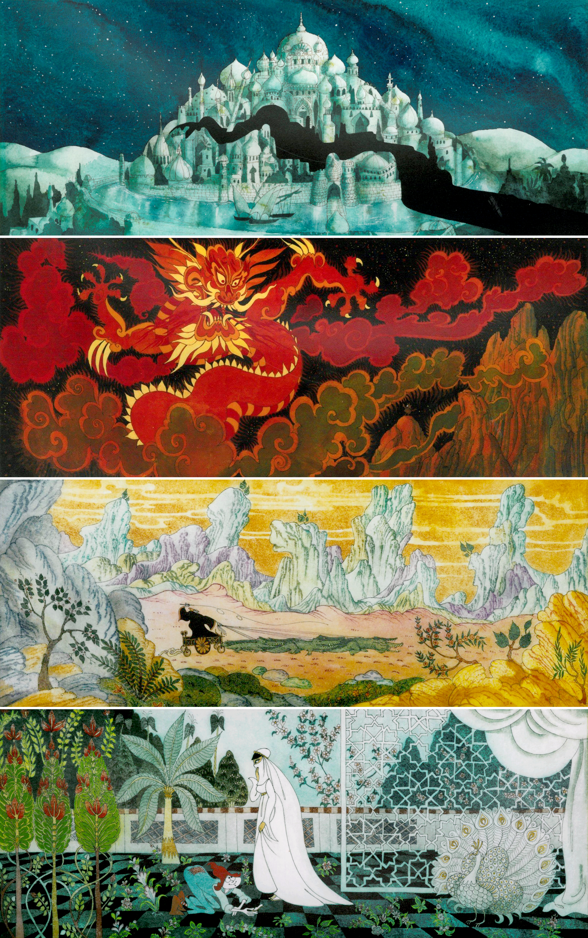 Le Cain’s sensibility as an illustrator helped to define Williams’ dream project The Thief and the Cobbler long before it had that name. In the ‘60s, it was called Nasruddin for a time — an independent, overambitious, constantly-morphing film.