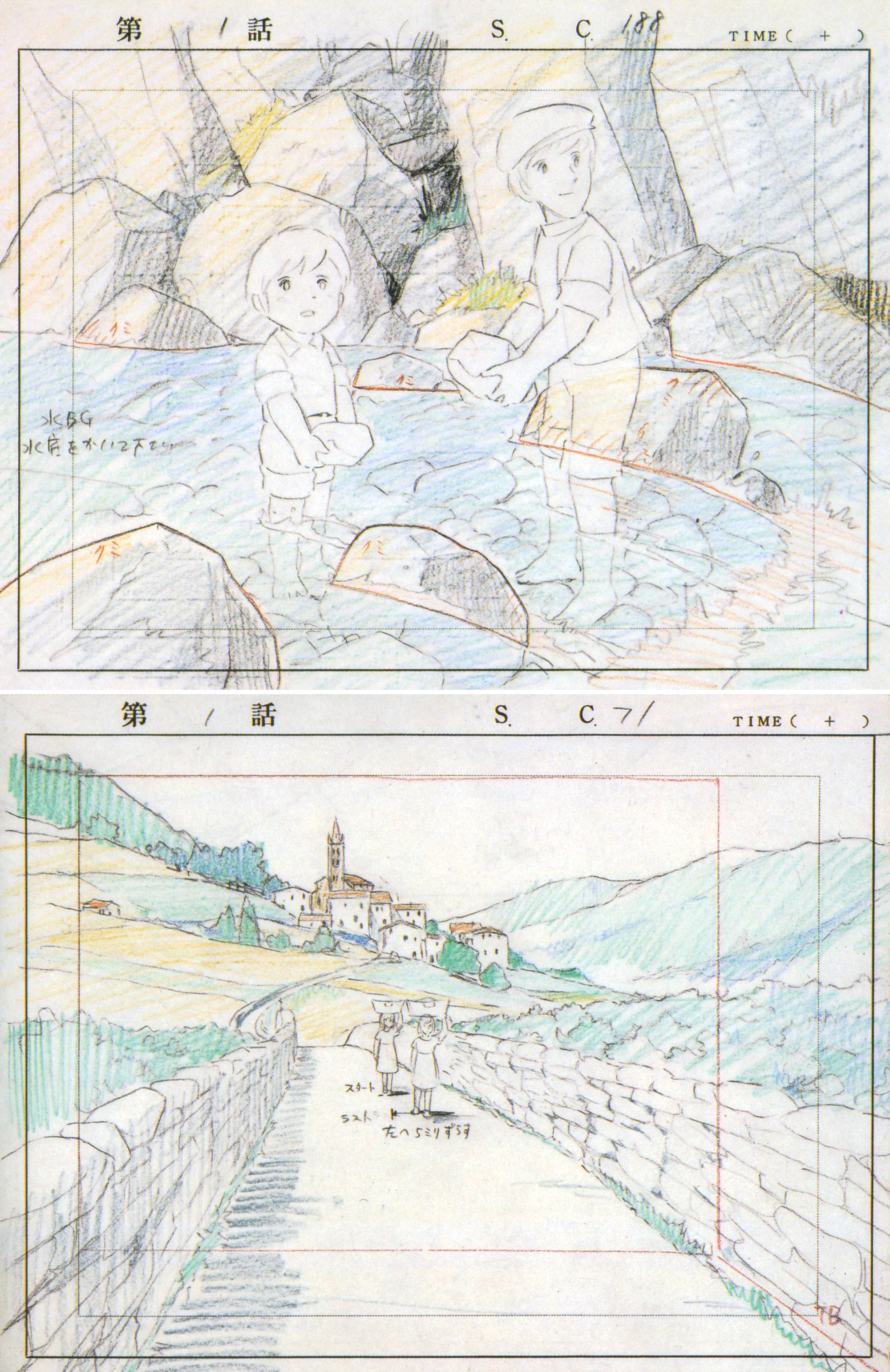 They built on Heidi’s grounded cinematography. “Paku-san’s thinking is that a film is a continuity, a continuity of time and space,” Miyazaki once said. In cel animation, this continuity is an illusion put across by careful editing, drawing, painting and camerawork. Done in a certain way, it makes an animated world feel like it obeys the laws of space and time. It can lend a documentary vibe. In fact, Takahata once thought of treating the 52 episodes of 3,000 Leagues like raw documentary footage for a feature film.