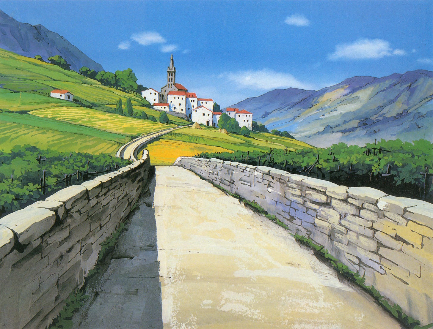 Takahata signed on after maybe three months of waffling. In the end, his Heidi would take the ideas of Pippi — life in a world that feels real — to the extreme. Kotabe said that “Takahata wanted to delve deep into [the story] and show [Heidi’s] daily life up in the mountains and all the human relationships.” Even her path to the cabin would be designed to feel concrete, a place that viewers revisited week after week. Capturing these things well, the team felt, would capture children’s imaginations.6