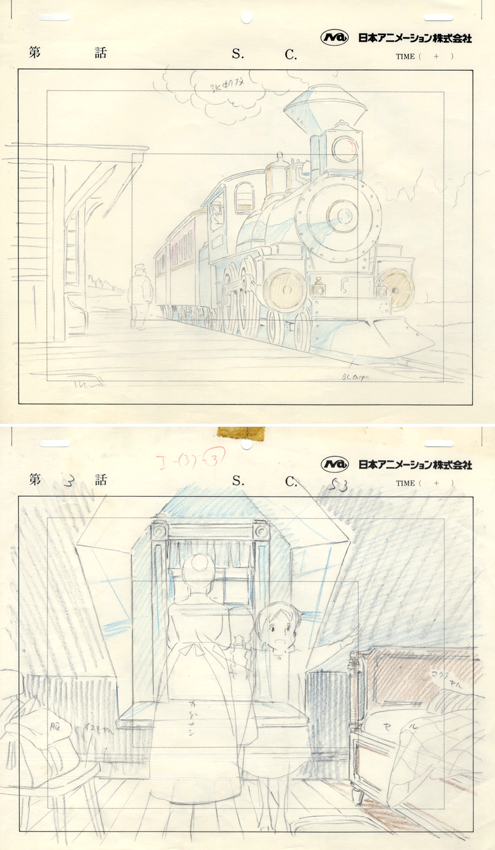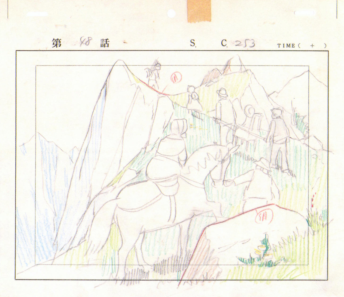 Heidi was entirely Paku-san’s world. … Until that time, whenever I worked together with Paku-san, without fail, we had detailed discussions about the storylines and the next steps to take, and as we laid there talking and arguing, a common idea welled up in us, and we decided to draw it. That was how it went. However, since around Heidi, just the work on screen design and layout was taking too long. I left the story all to Paku-san, and I ended up just handling the storyboards that came in. By the time we got to 3,000 Leagues, I’d already given up with Heidi, so I thought of it as an extension of that and left it all to Paku-san.