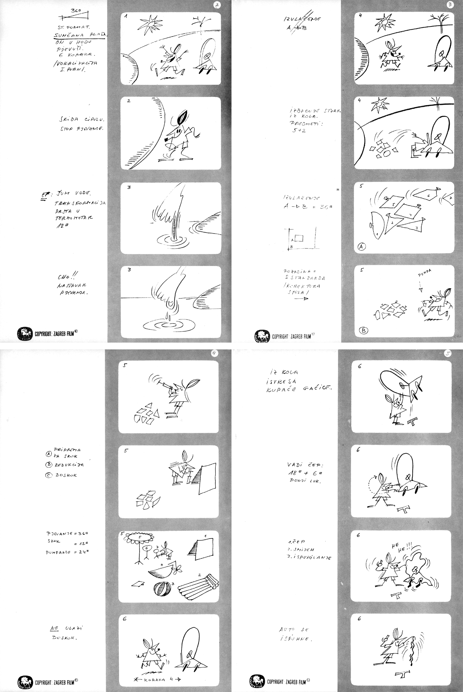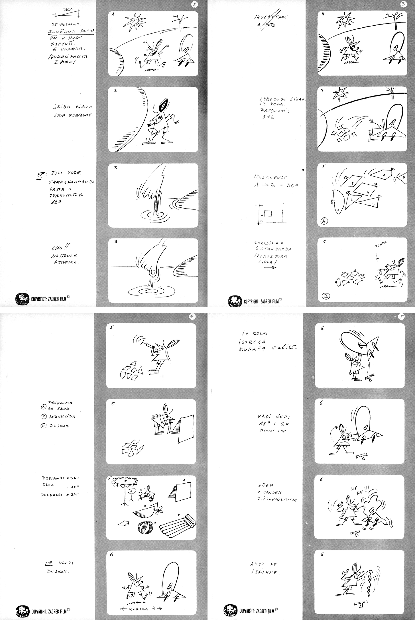 Our cartoons, first of all, are characterized by the diversity of graphic treatments and the variety of directing processes. Then there is the expanded, or rather unlimited, range of subjects that these films cover. The next characteristic is the style of animation, which is not based on real-physical movement — that is, on the anatomical law of motion. Fourth and very significant is the absence of words. Our films are made without accompanying voiceover lines or dialogue. All verbal solutions are replaced by graphic, visual ones, which eliminated language barriers. The cartoons of the “Zagreb School” are accessible and understandable to all viewers of any country. These basic characteristics undoubtedly speak of something common in our films, and whether someone calls it a way, a concept or a school — it makes no difference.1