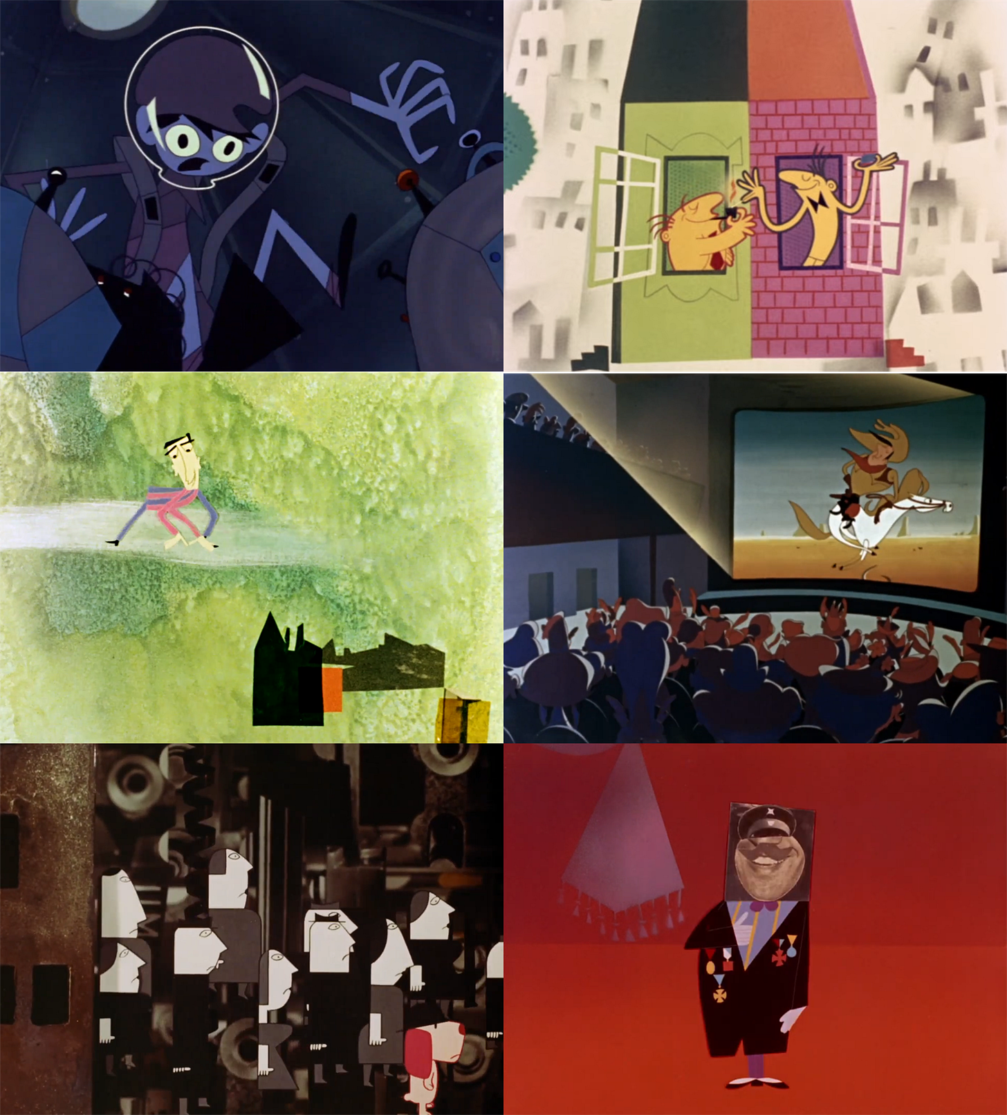 Also lovable is At the Photographer’s (1959), a funny and kind-of-melancholy story about a man trying, and failing, to smile for the camera. Graphic innovation drives it — seeing how the animators move the shapes is endless fun.