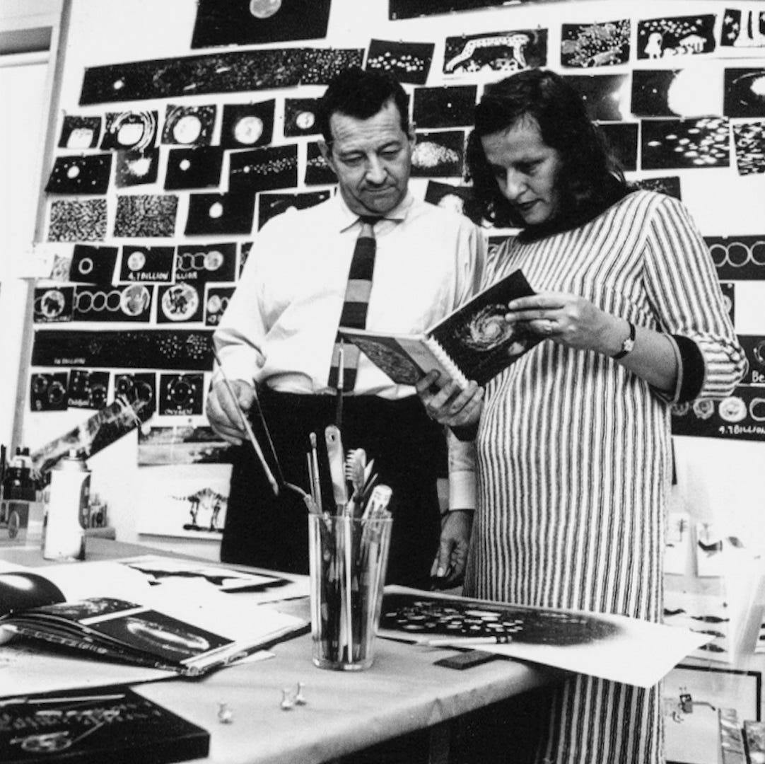 When the Hubleys married in 1955, they’d already been friends for years. They’d worked together, too. Their first collaboration was the educational film Human Growth (1947).3 Faith, who edited it, came from Hollywood’s live-action side. John was an animation guy; he designed its animated inserts.