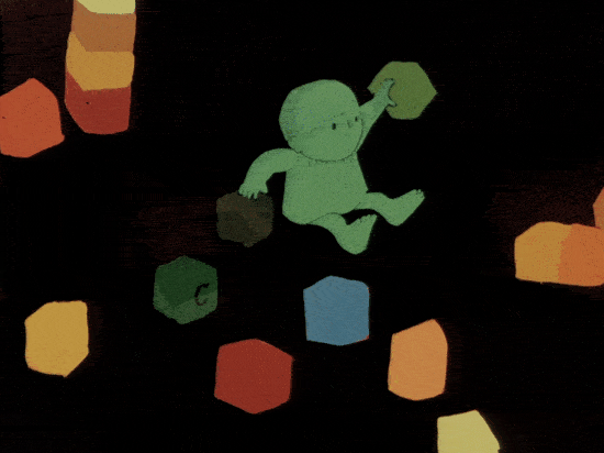 By the time the Hubleys released Moonbird (1959), their films were clearly different. Once again, it was a visual experiment — paint on paper, double-exposed over backgrounds — with a grounding in reality. It’s based on an edited recording of their sons Mark and Ray (“Hampy”) at play. Bobe Cannon and Ed Smith brought the soundtrack to life with world-class animation.14