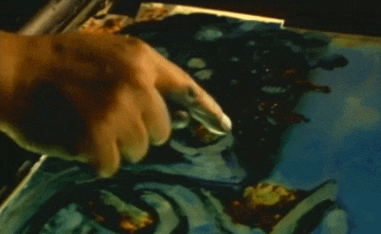 That director’s name is Martine Chartrand, and she animated Black Soul with oil paint on glass. Creating it took seven years, including roughly “five-and-a-half years of animation,” she’s said. Chartrand painted it mostly with her fingers, using the less toxic oils produced by Holbein and Rembrandt. At times, she found herself in her dimly lit workspace “seven days a week.”2