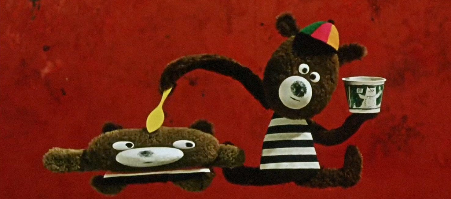 The Bears cartoons really are irresistible. They rethink stop-motion puppetry — using tricks that allow “puppets to be animated just as freely as characters in hand-drawn cartoons, complete with smears, limb stretches, and even grotesque distortions,” in the words of blogger and translator Toadette. The results are wildly imaginative.