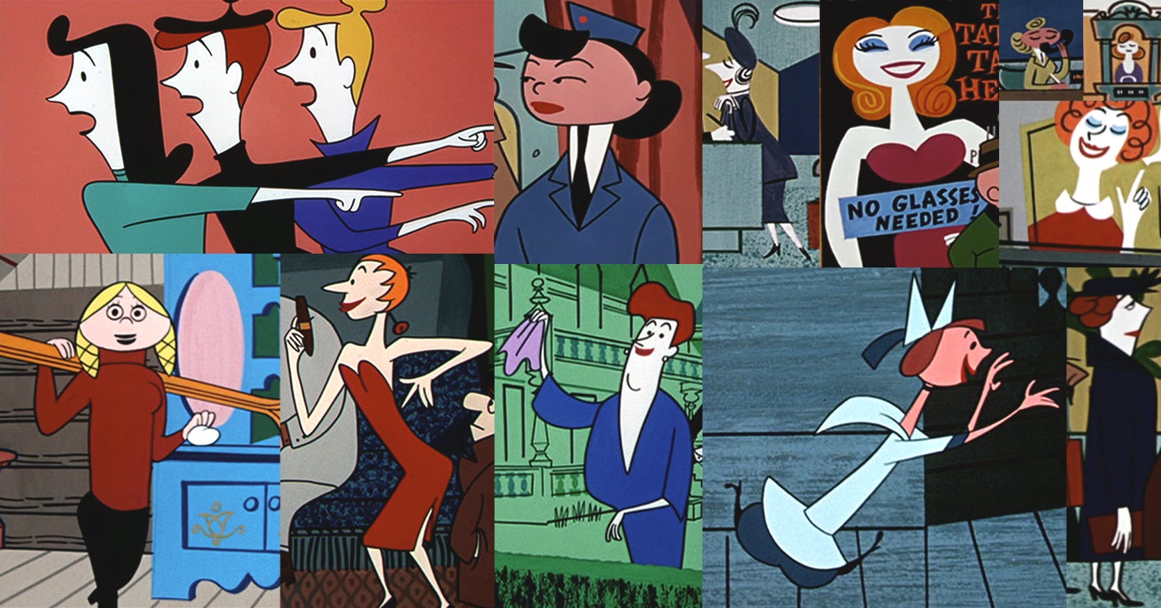 Sturtevant brought her slick, polished vision to more than just Magoo himself. Her environment and character designs for When Magoo Flew (1954), particularly in the airport sequence, are stunningly crisp and clean. That film won Magoo his first Oscar — and UPA its second.